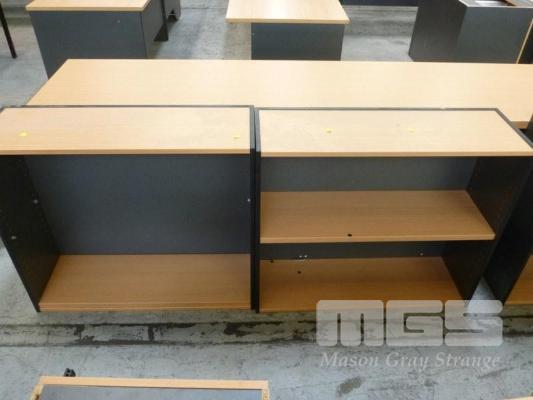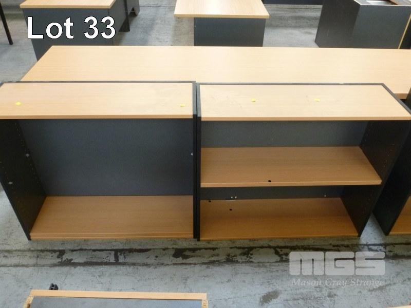 PAIR BOOKSHELVES, 2 TIER, 90 x 30 x 78cm (H), BEECH/IRONSTONE LAMINATE