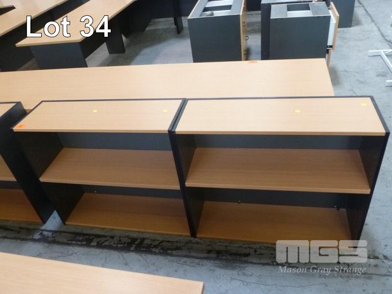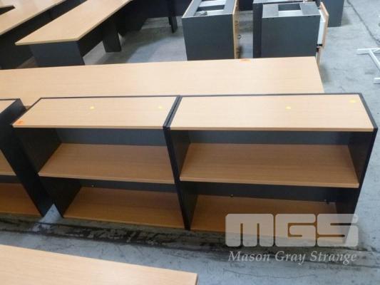 PAIR BOOKSHELVES, 2 TIER, 90 x 30 x 78cm (H), BEECH/IRONSTONE LAMINATE