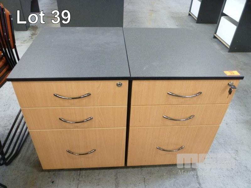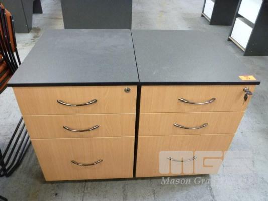 2 x UNDERDESK MOBILES, 3 DRAWER, BEECH/IRONSTONE LAMINATE