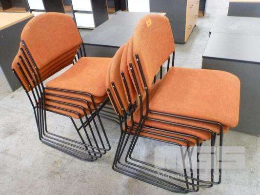 10 x VISITORS CHAIRS, BLACK STEEL FRAME, BURNT ORANGE FABRIC