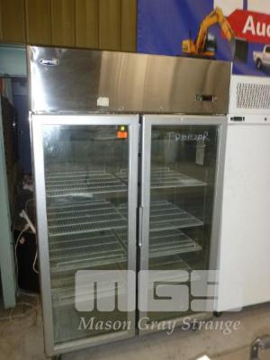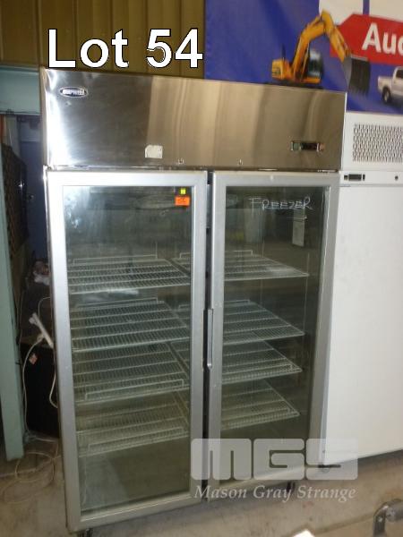 UPRIGHT 2 DOOR DISPLAY FREEZER, QUIPWELL MOD: TGC-13 1300 LITRE STAINLESS STEEL CASED SELF CONTAINED UNIT, 240V