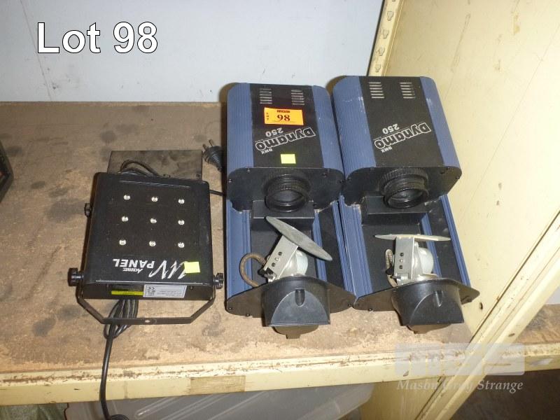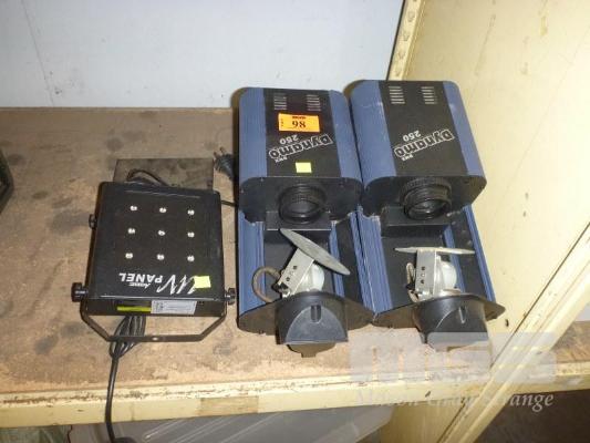 2 x SCANNER LIGHTS, DMX DYNAMO 250 & 2 x BACKLIGHT PANELS, ACME ILED-UV-09