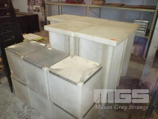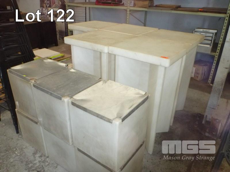 5 x POLY BAR TABLES, EACH 60 x 60cm & 6 x POLY TABLES, EACH 43 x 43cm