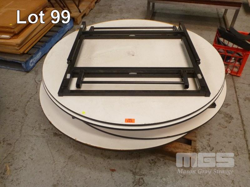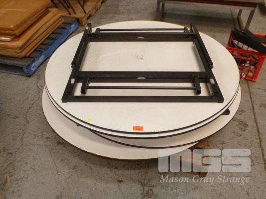 4 x CIRCULAR TRESTLE TABLES, 150cm DIAMETER, WHITE LAMINATE