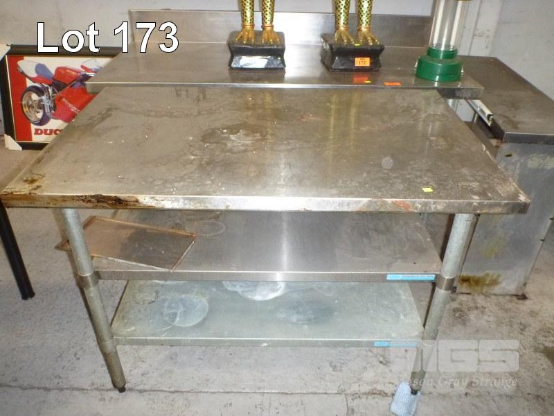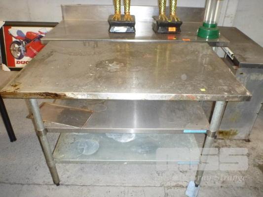 2 x STAINLESS STEEL TOP BENCHES, 150 x 70cm & 122 x 76cm
