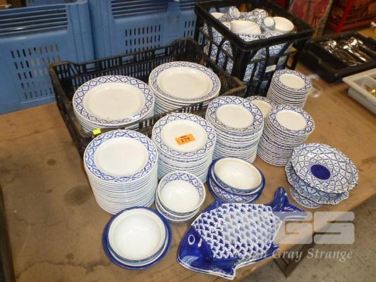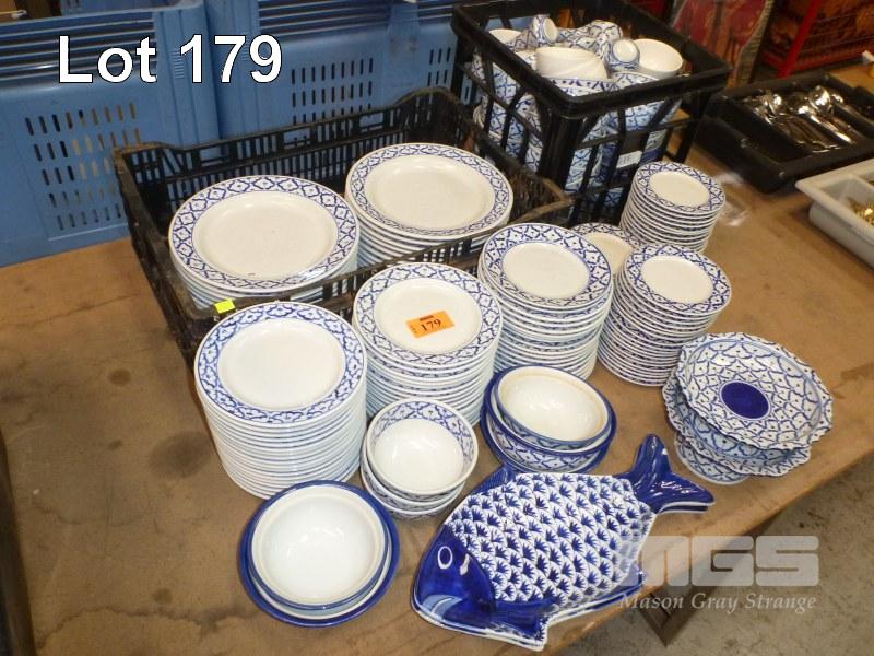 140 (APPROX) x BLUE PATTERNED, RIMMED, MAIN, SIDE PLATES & BOWLS