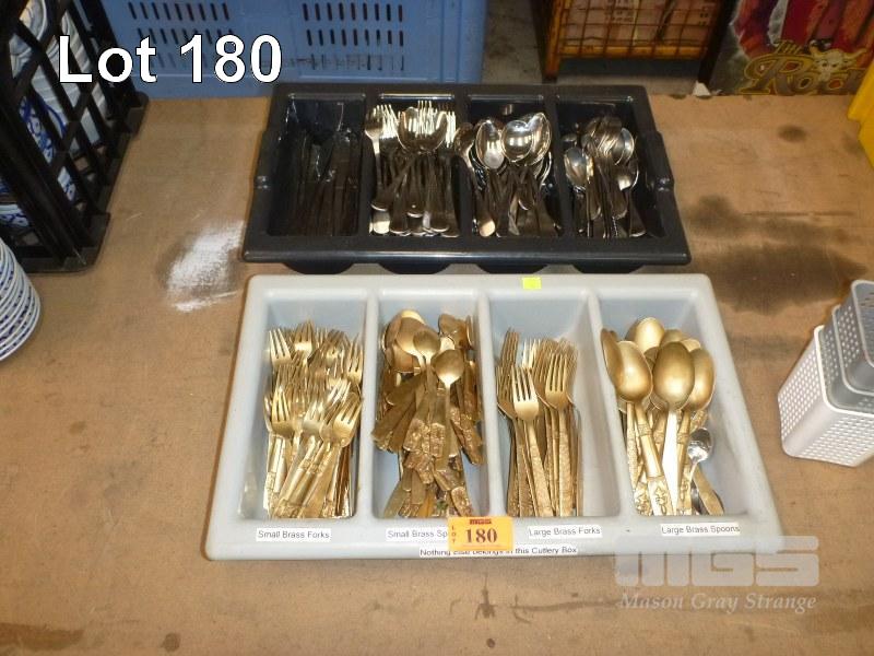 2 x TRAYS BRASS & STAINLESS STEEL CUTLERY