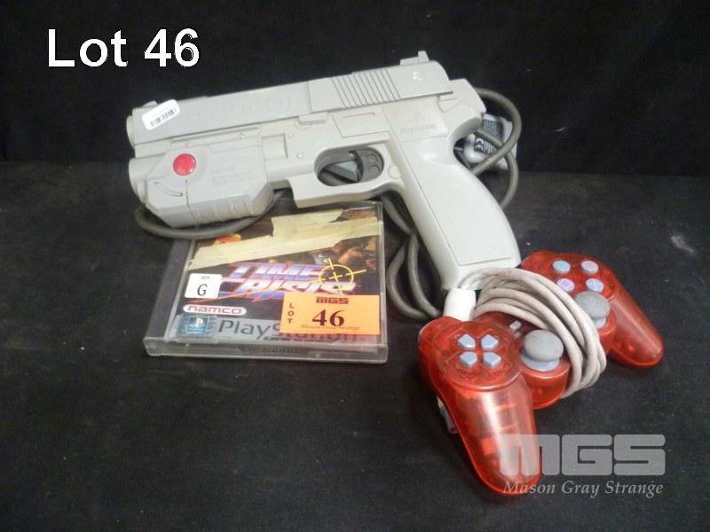 SONY PLAYSTATION 1 NAMCO GUN WITH TIME CRISIS GAMES & COLOUR CONTROLLER