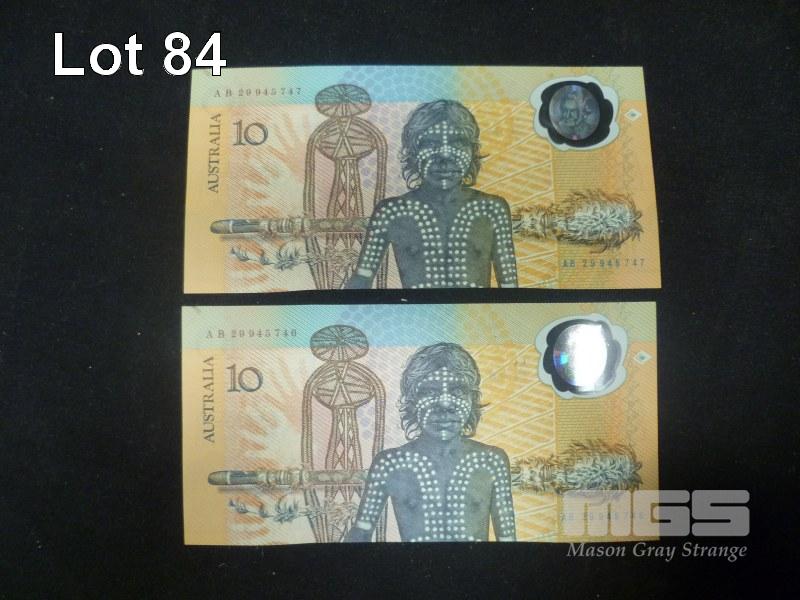 1988 COMMEMORATIVE 2 x $10.00 CONSECUTIVE 1ST RELEASE NOTES UNC