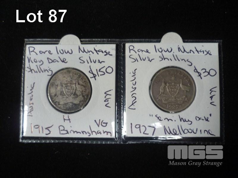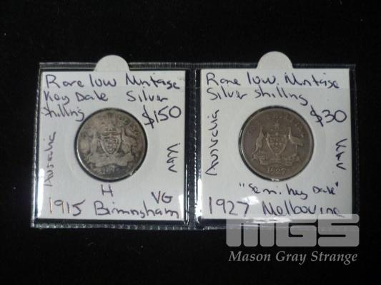 COLLECTION OF KEY DATE SHILLING 1951H + 1927 MIXED GRADES 2 COINS