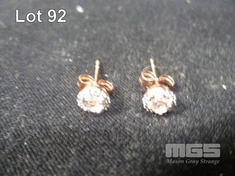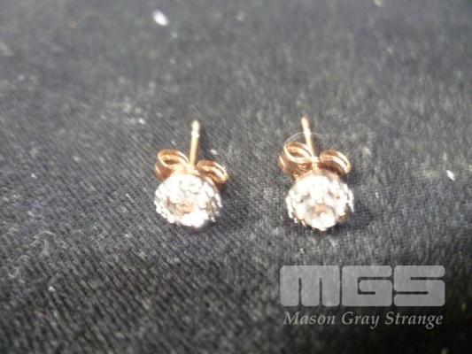 A PAIR OF 9ct ROSE GOLD EARRINGS WITH MORGANITE & ROUND DIAMONDS, 9ct ROSE GOLD BUTTERFLY BACKINGS