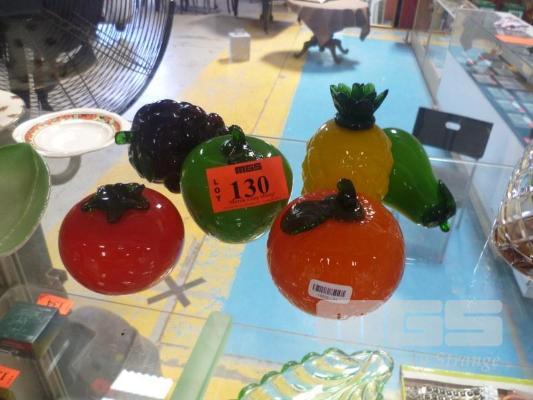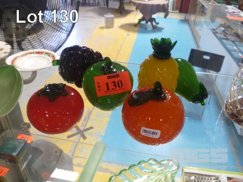 ASSORTED COLOURED GLASS FRUIT, 6 x PIECES