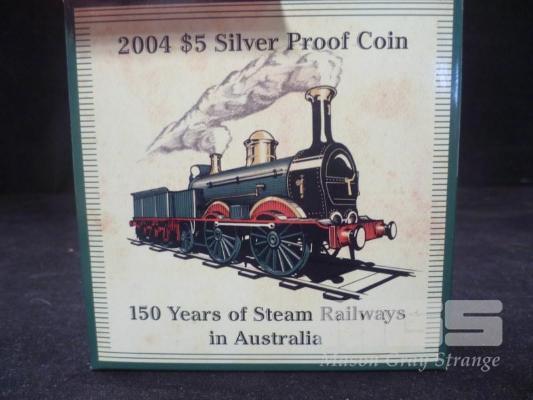 2004 PURE SILVER 1oz PROOF COIN "150 YEARS OF STEAM RAILWAYS"
