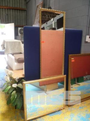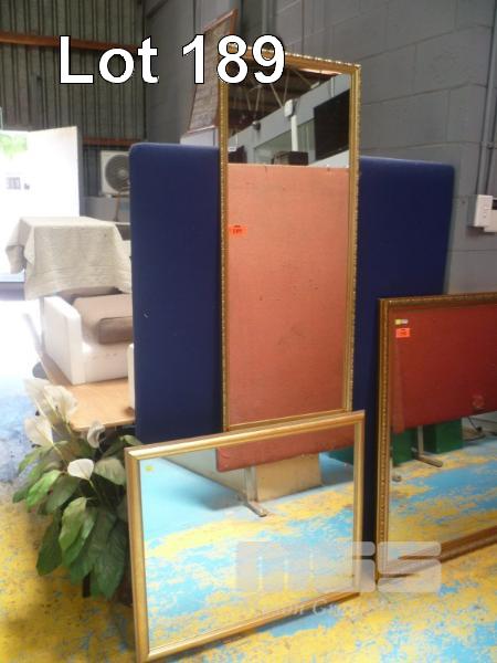 2 x GOLD FRAMED WALL MIRRORS, 70 x 87cm & 190 x 50cm