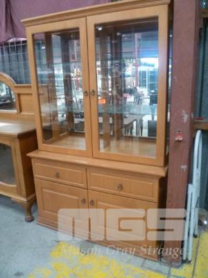 OAK, GLASS FRONTED DISPLAY CABINET, 2 x DOOR GLASS FRONT TOP SECTION WITH 2 x DOOR/DRAWER UNDERSTORAGE