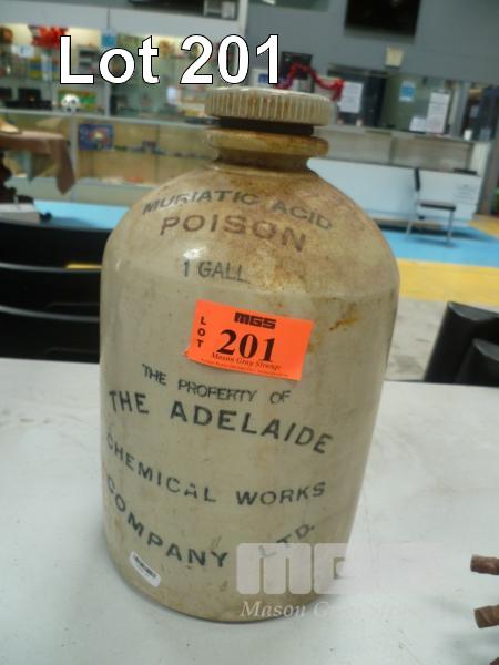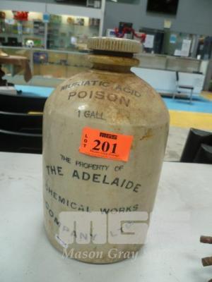 STONEWARE JUG, "THE ADELAIDE CHEMICAL WORKS COMPANY", GALL, MURIATIC ACID