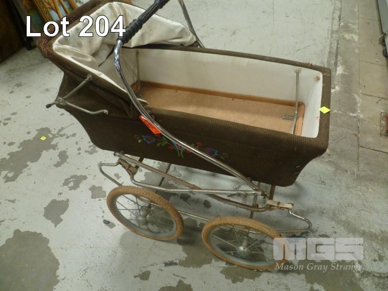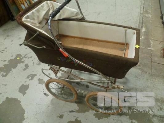 VINTAGE DOLLS PRAM WITH UPHOLSTERED BASSINET