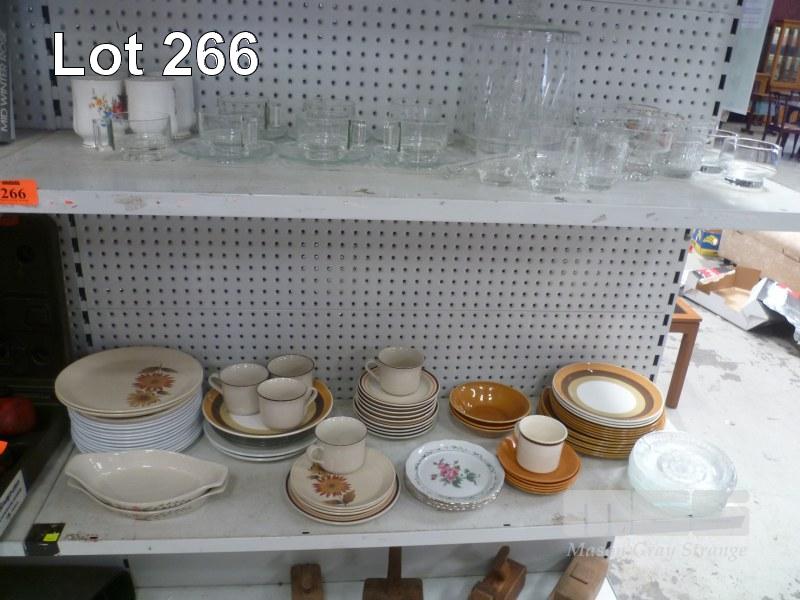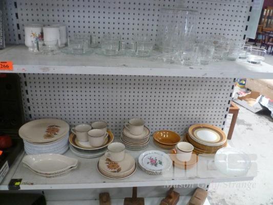 ASSORTED DINNERWARE & GLASSWARE, 2 x SHELVES