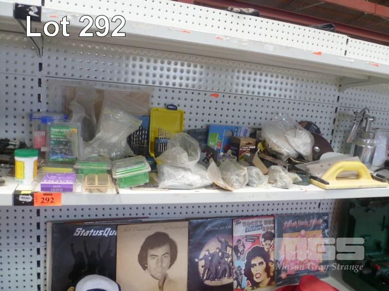 ASSORTED DRILL BITS, HOLE SAWS, SCREWS, NAILS, FASTENERS, SANDING & BUFFING PADS