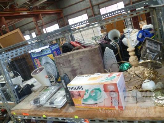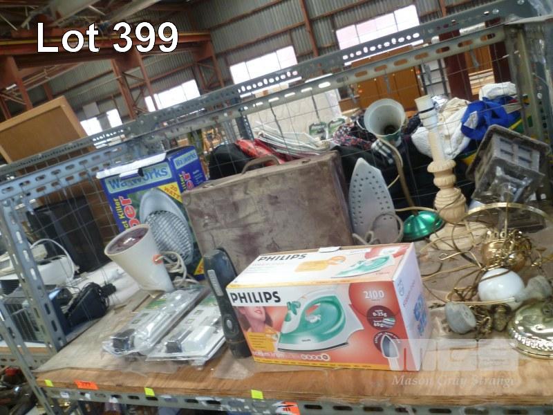 ASSORTED ELECTRICAL, CLOTHES IRON, LAMPS, LIGHTS, ETC, 1 x BAY
