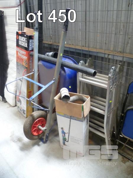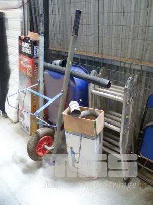 ALUMINIUM MULTI FOLD LADDER, WHEELBARROW, BLOWER KIT ATTACHMENT, B&D ELECTRIC LINE TRIMMER, ETC