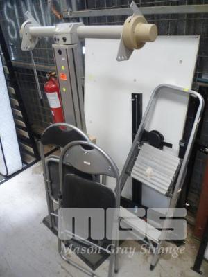 DRAFT BOARD COMPONENTS, STEP LADDER & FOLD UP CHAIRS