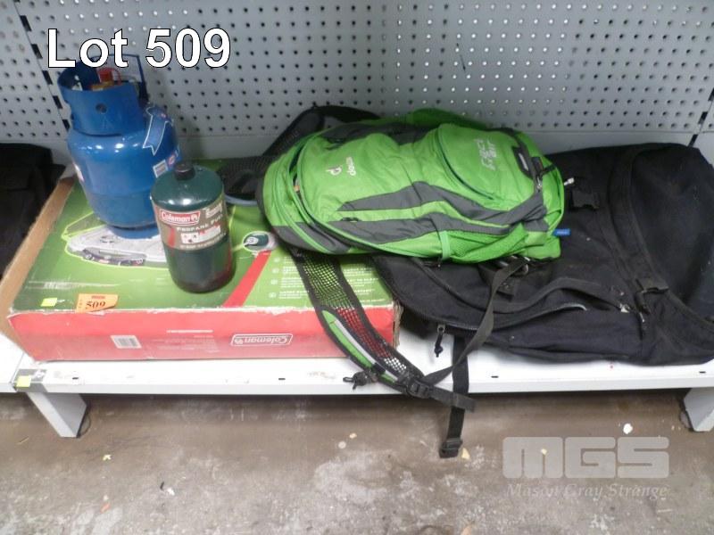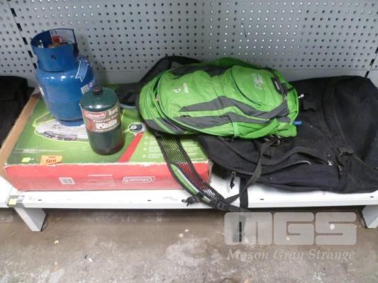 COLEMAN CAMP STOVE, BACK PACKS, ETC