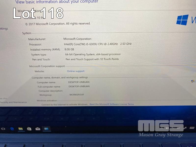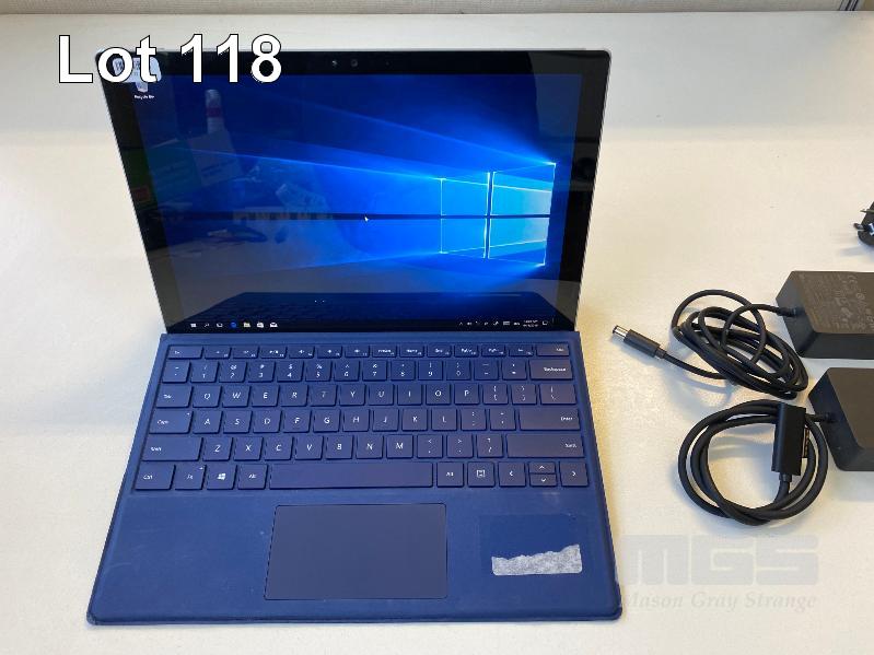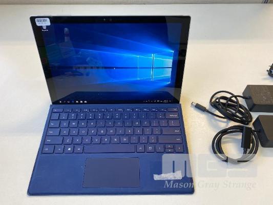 TABLET PC, MICROSOFT SURFACE PRO 4, MODEL 1724, CORE i5 6300U (6TH GEN) @ 2.4GHz, 8GB RAM, 256GB SSD, 12.3" TOUCHSCREEN, Wi-Fi, WINDOWS 10 PRO INSTALLED, KEYBOARD TYPE COVER, SURFACE DOCK (1661) WITH DOCK POWER SUPPLY (1749) S/N:060921364753