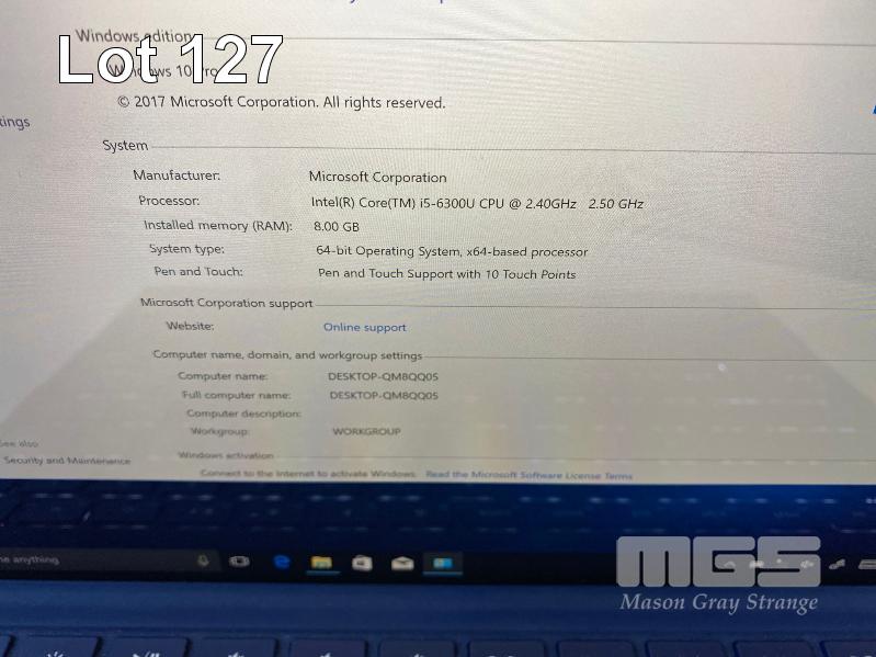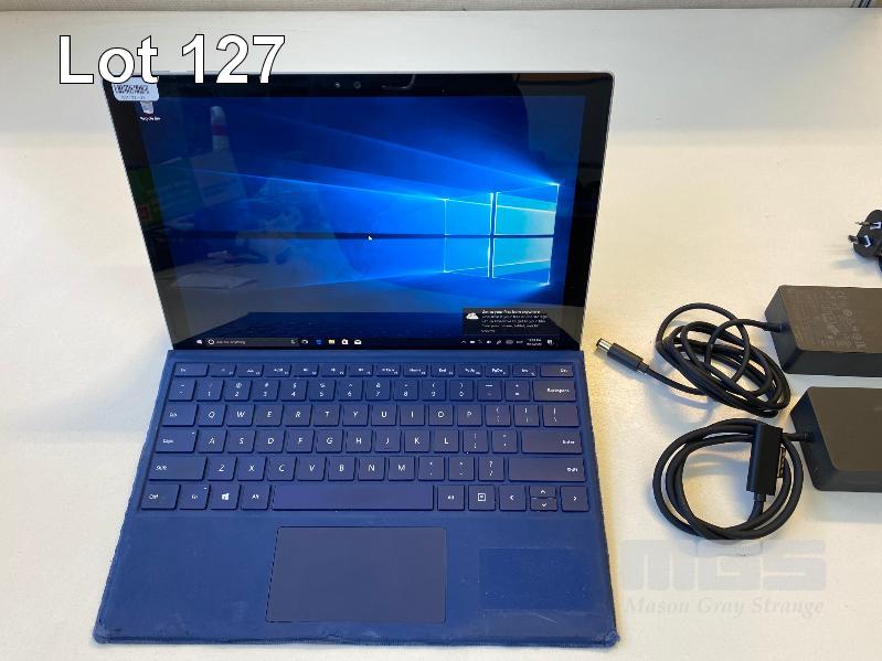 TABLET PC, MICROSOFT SURFACE PRO 4, MODEL 1724, CORE i5 6300U (6TH GEN) @ 2.4GHz, 8GB RAM, 256GB SSD, 12.3" TOUCHSCREEN, Wi-Fi, WINDOWS 10 PRO INSTALLED, KEYBOARD TYPE COVER, SURFACE DOCK (1661) WITH DOCK POWER SUPPLY (1749) S/N:009134462153