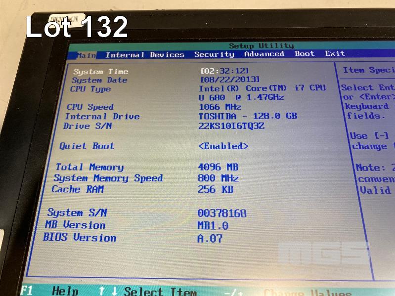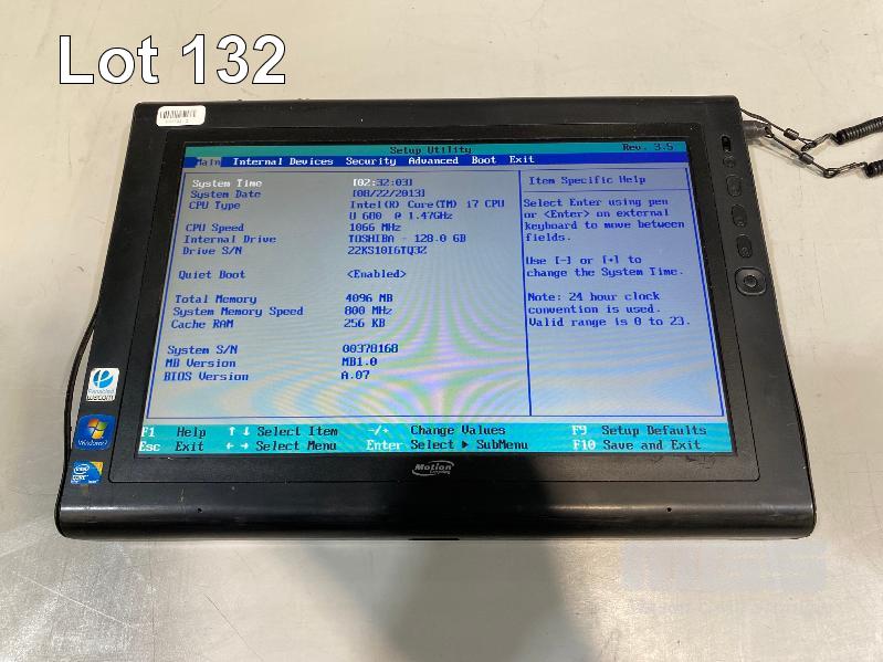 TABLET PC, MOTION COMPUTING J3500 RUGGED, CORE i7 U680 @ 1.47GHz, 4GB DDR3 RAM, 128GB SSD, 12.1" TOUCHSCREEN (NOTE: SCREEN EDGING LOOSE) (NO POWER SUPPLY) S/N:00378168