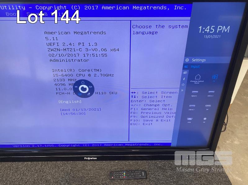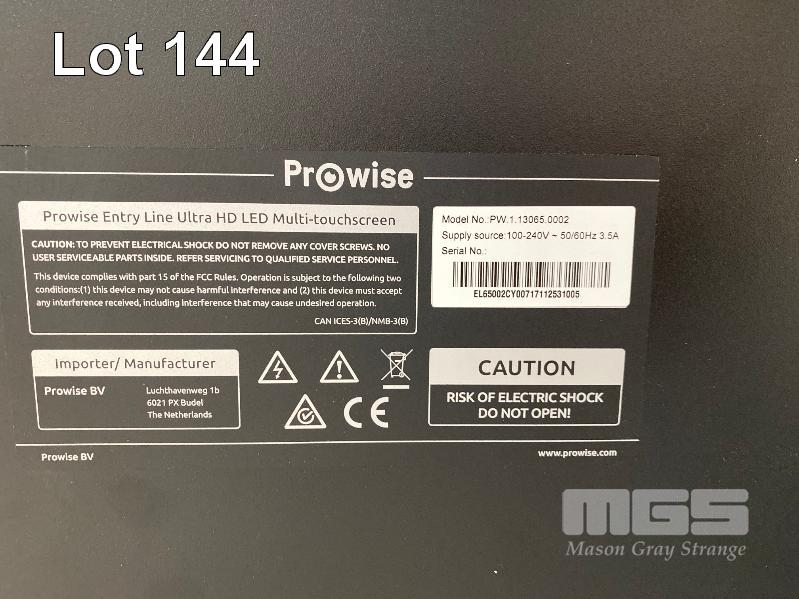 MONITOR, PROWISE ENTRY LINE 65" ULTRA HD LED MULTI-TOUCHSCREEN, 3840x2160, MODEL PW.1.13065.0002, REMOTE WITH BUILT-IN PC MODULE, CORE i5 6400 @ 2.7GHz, 4GB RAM, 128GB SSD, Wi-Fi, MODEL PW.2.17014.0001 WITH WALL BRACKET, KEYBOARD & MOUSE S/N:EL65002CY00717112531005