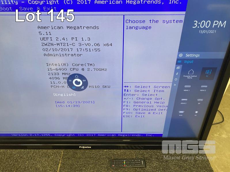 MONITOR, PROWISE ENTRY LINE 65" ULTRA HD LED MULTI-TOUCHSCREEN, 3840x2160, MODEL PW.1.13065.0002, REMOTE WITH BUILT-IN PC MODULE, CORE i5 6400 @ 2.7GHz, 4GB RAM, 128GB SSD, Wi-Fi, MODEL PW.2.17014.0001 WITH WALL BRACKET, KEYBOARD & MOUSE S/N:EL65002CY00717112530985