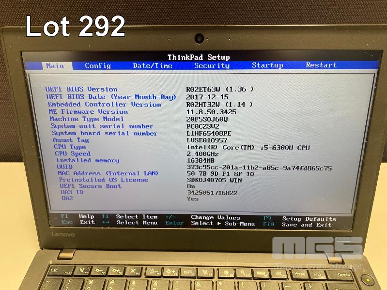 LAPTOP, LENOVO THINKPAD X260 (20F5S0J60Q), CORE i5 6300U (6TH GEN) @ 2.4GHz, 16GB DDR4 RAM, 525GB SSD, 12.5" WIDESCREEN (1366x768), INTEL HD VIDEO, Wi-Fi, BLUETOOTH, WINDOWS 10 PRO INSTALLED & POWER SUPPLY S/N:PC0CZSV2