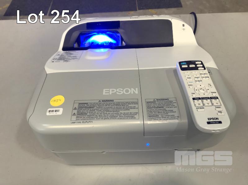 PROJECTOR, EPSON EB-485W ULTRA SHORT THROW 3LCD, 3,100 LUMENS, HDMI INPUT WITH ELPMB28 WALL MOUNT 2,839 HOURS SHOWING WITH REMOTE S/N:QV4F2Y0029L