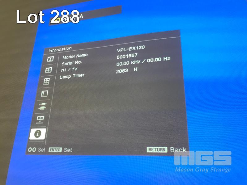PROJECTOR, SONY VPL-EX120 3LCD, 2,600 LUMENS, 2,083 HOURS SHOWING (NO REMOTE) S/N:5001867