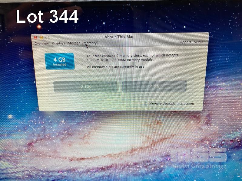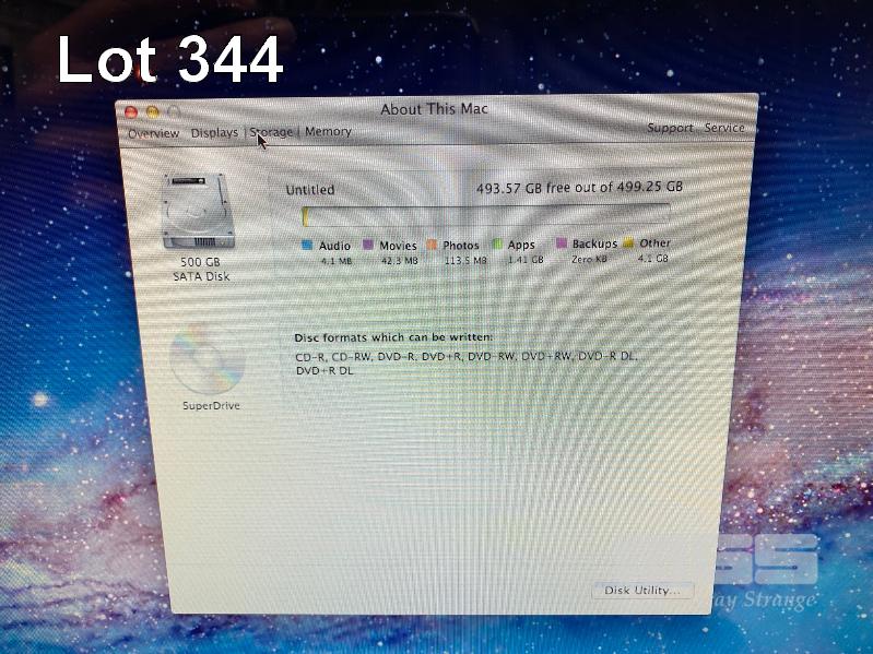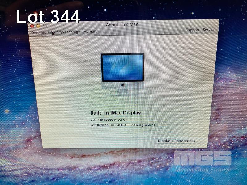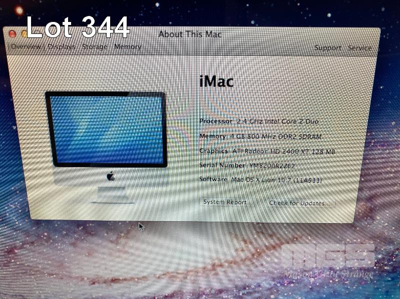 APPLE iMAC (A1224), CORE 2 DUO E8135 @ 2.4GHz, 4GB DDR2 RAM, 500GB SATA HDD, DVD-RW, BUILT-IN 20" DISPLAY (1680x1050), MAC OS 10.7 INSTALLED (NO KEYBOARD, NO MOUSE, NO APPLE POWER CORD) S/N:YM8200R2ZE2