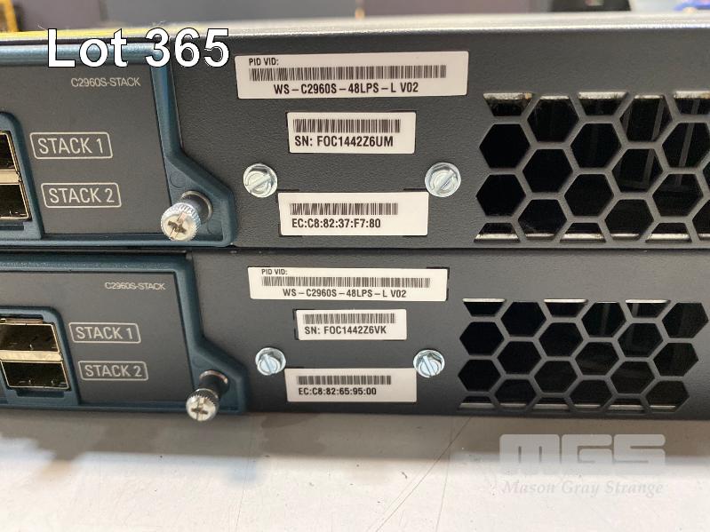 2 x CISCO CATALYST 2960-S SERIES PoE+ 48-PORT SWITCHES, WS-C2960S-48LPS-L V02 WITH C2960S-STACK MODULES (NO CABLES) S/N:FOC1442Z6UM, FOC1442Z6VK