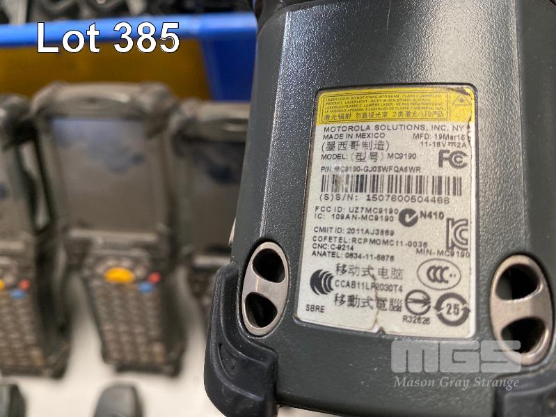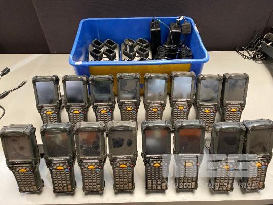 16 x MOTOROLA / SYMBOL MC9190 MOBILE HANDHELD COMPUTERS (SOME DAMAGED), 4 x 4-SLOT BATTERY CHARGERS WITH 4 x POWER SUPPLIES