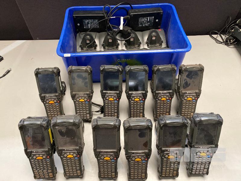 12 x MOTOROLA / SYMBOL MC9090 MOBILE HANDHELD COMPUTERS, 2 x 4 STATION CHARGERS WITH 2 x POWER SUPPLIES