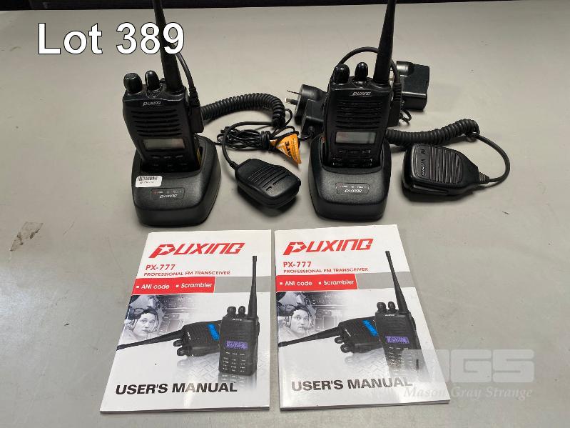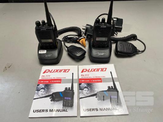 2 x PUXING PX-777 HANDHELD TWO-WAY RADIOS, MICS WITH CHARGERS