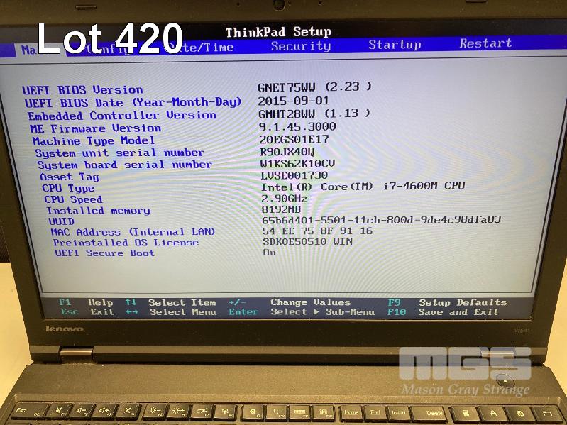 LAPTOP, LENOVO THINKPAD W541 (20EGS01E17), CORE i7 4600M (4TH GEN) @ 2.9GHz, 8GB DDR3 RAM, 512GB SSD, DVD-RW, 15.6" WIDESCREEN (1920x1080), INTEL HD VIDEO, 2GB NVIDIA QUADRO K1100M VIDEO, Wi-Fi, BLUETOOTH, WINDOWS 10 PRO INSTALLED & POWER SUPPLY (NOTE: MARKS ON SCREEN) S/N:R90JX40Q