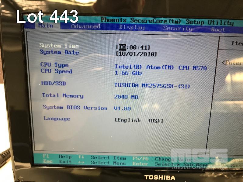 NETBOOK, TOSHIBA NB500 (PLL50A-02800D), ATOM N570 @ 1.66GHz, 2GB DDR3 RAM, 250GB SATA HDD, 10.1" SCREEN & POWER SUPPLY (NOTE: BATTERY NOT CHARGING) S/N:6B018331K