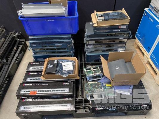 1 x PALLET ASST CISCO NETWORKING, SWITCHES, PARTS, CLIPSAL CAT5E PATCH PANELS ETC