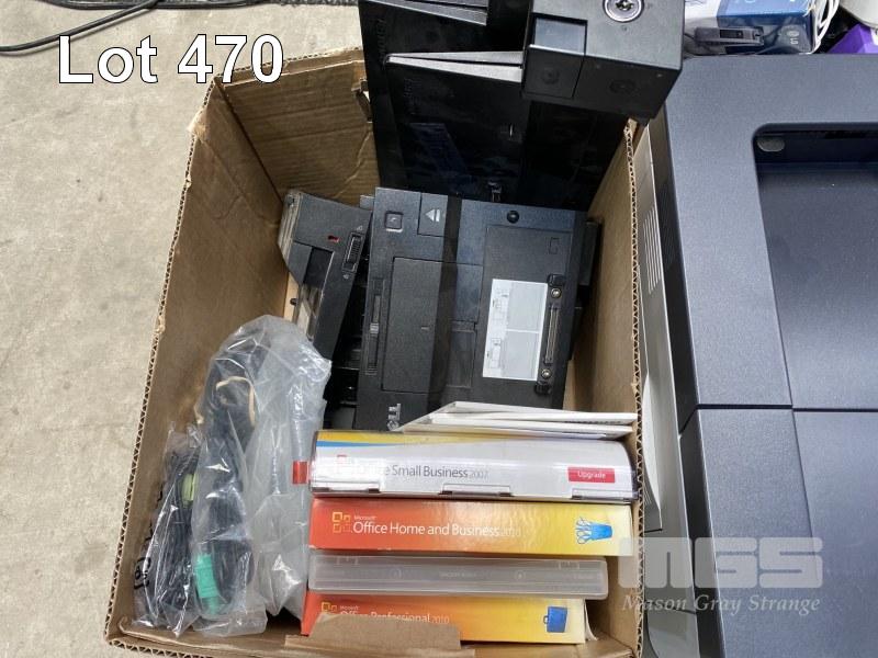 KYOCERA PRINTER (NO TONER), LAPTOP DOCKING STATIONS (NO POWER SUPPLIES), ASST OLD MOBILE PHONES ETC