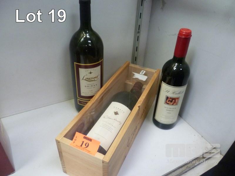 ST HALLET, 1992, OLD BLOCK SHIRAZ, ORLANDO LAWSONS, VINTAGE 1994, PADTHAWAY SHIRAZ, 1.5 LITRE & HARDYS 1997 SHIRAZ, EILEEN HARDY, 1.5 LITRE (ALL BOTTLES HAVE SIGNS OF LEAKAGE)