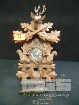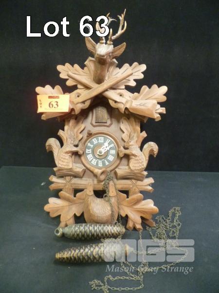 CARVED TIMBER PENDULUM CUCKOO CLOCK, MADE IN GERMANY