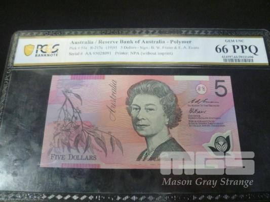 1995 1ST PREFIX 5 DOLLAR NOTE "AA95" PCGS GEM UNC 66