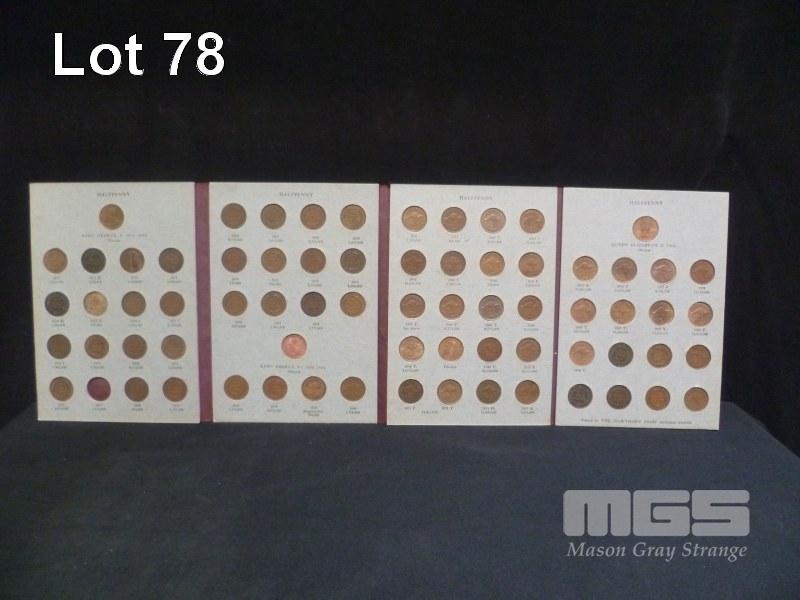 1911 - 1964 HALF PENNY SET 7 COIN MIXED GRADES F- UNC NO 1923