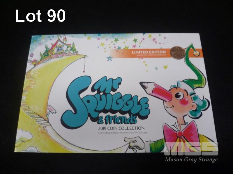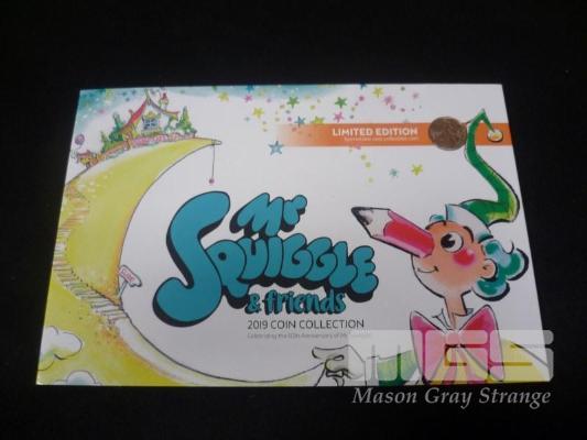 2019 MR SQUIGGLE 7 COIN UNC SET ( 4 x $2 COLOURED COINS 2 x $1, 1 x 1c)