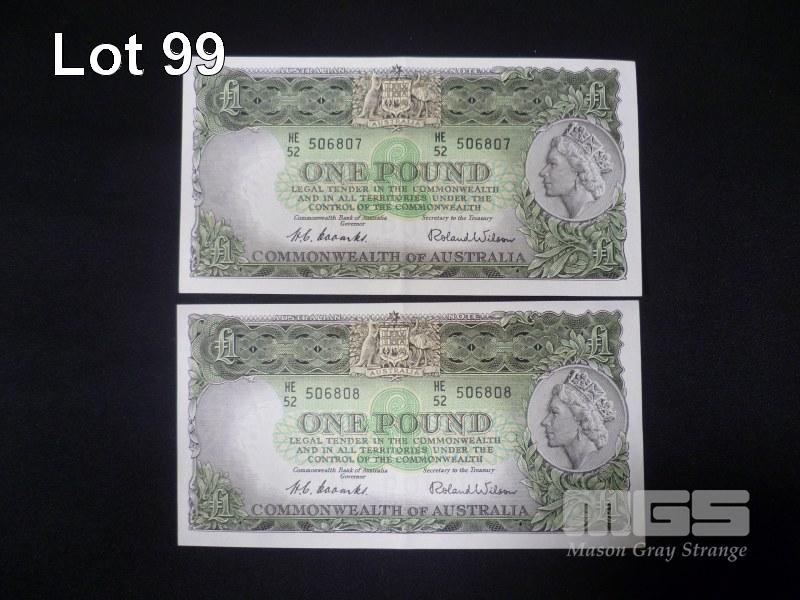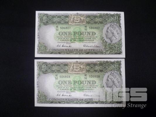 1960 2 x 1 POUND NOTE CONSECUTIVE COOMBS WILSON APPEARS HIGH GRADE